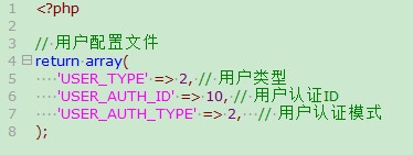 默认情况下,扩展配置文件中的设置参数会并入项目配置文件中。也就是默认都是一级配置参数,例如user.php中的配置参数如下: