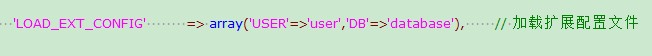 项目设置了加载扩展配置文件user.php 和db.php分别用于用户配置和数据库配置,那么会自动加载项目配置目录下面的配置文件Conf/user.php和Conf/db.php。
