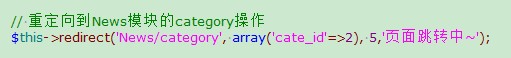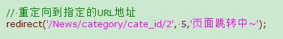 上面的用法是停留5秒后跳转到News模块的category操作,并且显示页面跳转中字样,重定向后会改变当前的URL地址。
