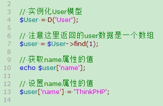ThinkPHP的模型对象实例本身也是一个数据对象,所以属性的访问就显得非常直观和简单,可以支持对象和数组两种方式来访问数据属性,例如下面的方式采用数据对象的方式来访问User模型的属性: