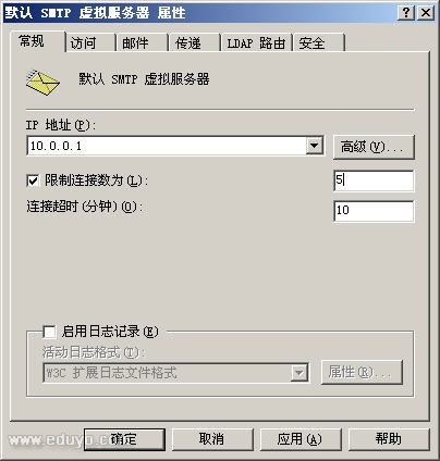依次打开“开始-程序-管理工具-internet信息服务”,在窗口左面”SMTP虚拟服务器”上点右键选属性,在“常规”选项卡下的“IP地址”下拉列表框中选择此邮件服务器的IP地址,并可以设定允许的最大连接数,最后确定即可。(如图2所示)