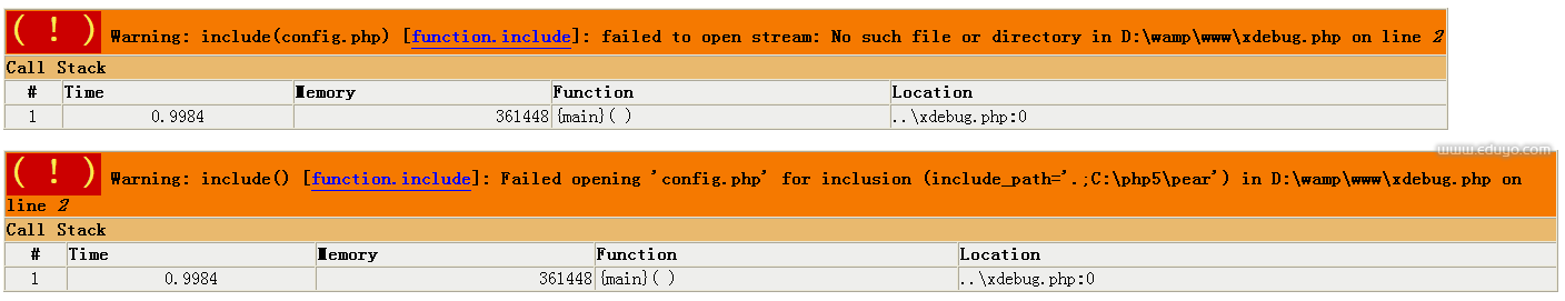config.php为不存在的文件,执行 xdebug.php ,报错如下: