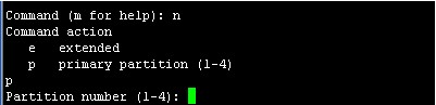 输入n回车新建分区,接着再输入p回车新建主分区,如图