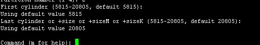 First cylinder (1-20805, default 1):这里是设置分区起始的柱面,直接回车选择默认即可,回车后如下图