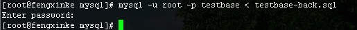 使用命令 mysql -u root -p testbase < testbase-back.sql 对数据库testbase进行还原