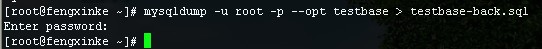 在linux命令行下使用命令mysqldump -u root -p --opt testbase > testbase-back.sql 对数据库testbase进行备份,输入命令后系统会提示输入密码