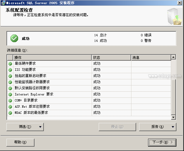 5.此处是系统配置的测试,如果在“云主机”上安装有可能会出现“最低硬件不符”您可以直接忽略跳过.