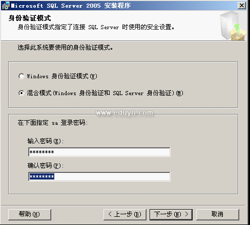 11.选择“使用混合模式”,然后我们需要设置SA密码