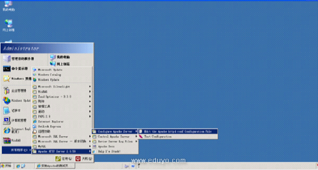10.现在开始配置Apache服务器,如果不配置,你的安装目录下的Apache2\htdocs文件夹就是网站的默认根目录,在里面放入文件就可以了。现在进行简易配置如图操作