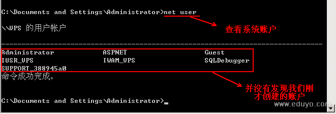 可以总结得出的结论是:这种方法只能将账户在“命令提示符”中进行隐藏,而对于“计算机管理”则无能为力。因此这种隐藏账户的方法并不是很实用,只对那些粗心的管理员有效,是一种入门级的系统账户隐藏技术。