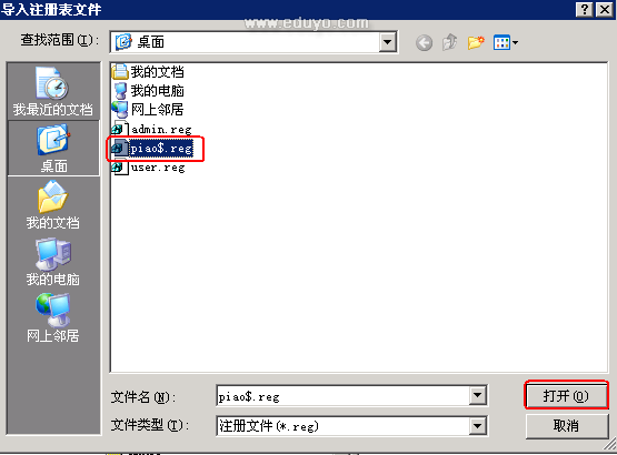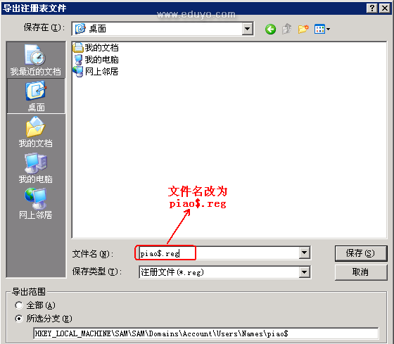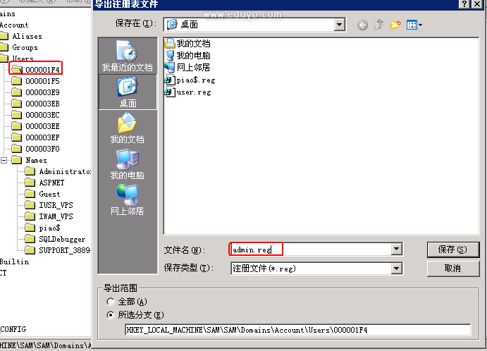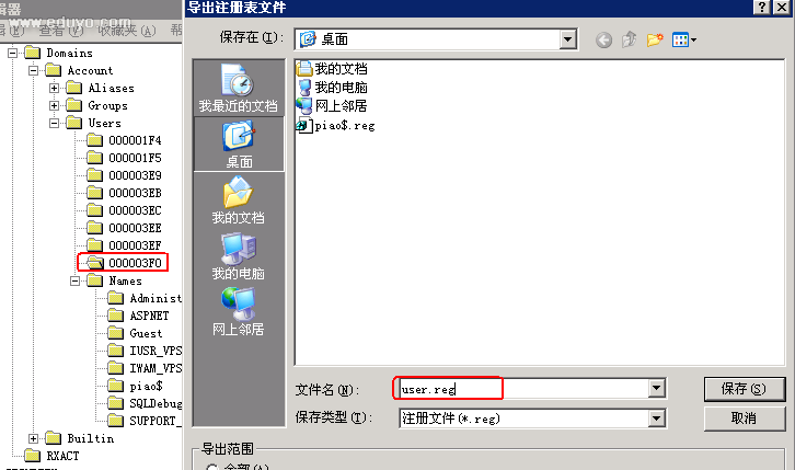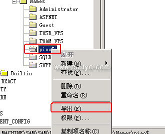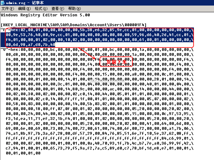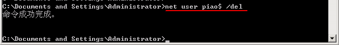 将“piao$”的键值导出为piao$.reg,同时将“000003f0”和“000001F4”项的F键值分别导出为user.reg,admin.reg。用“记事本”打开admin.reg,将其中“F”值后面的内容复制下来,替换user.reg中的“F”值内容,完成后保存。接下来进入“命令提示符”,输入“net user piao$ /del”将我们建立的隐藏账户删除。最后,将piao$.reg和user.reg导入注册表,至此,隐藏账户制作完成。