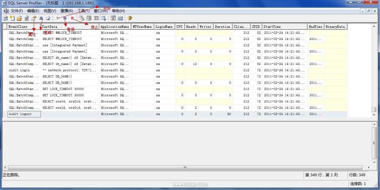 不仅仅是这样,我们还可以对其中的数据进行分析,查询,跟踪可以暂停,开始和停止操作,可以同时启动多个跟踪,同时跟踪不同的数据库和表