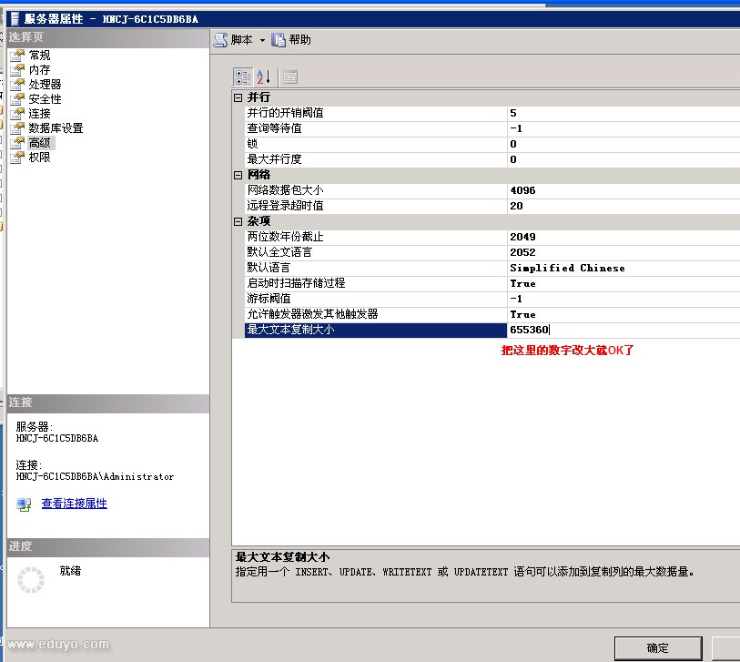 在查询分析器里运行:sp_configure 'max text repl size','2147483647'