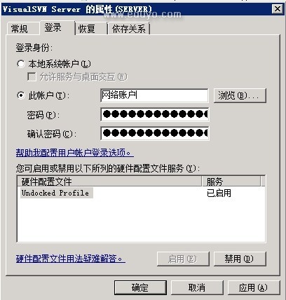 查看下服务吧,打开service找到VisualSVN,查看属性如下图: