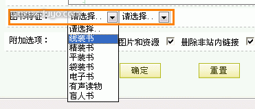 在我们发布图书内容的时候,就会发现有一个选择是图书特征的内容类型选择,不过个人建议如果设计一级联动选择,最好还是使用“option下拉框”这个数据类型。