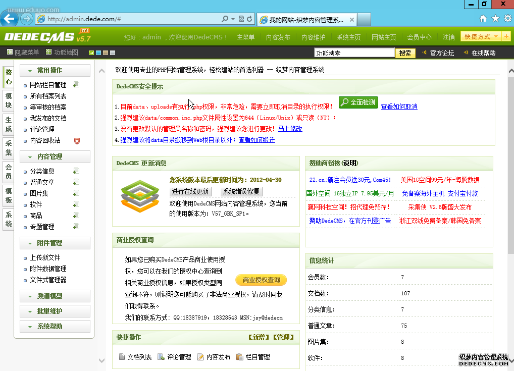 当然我们这里的服务器环境配置仅仅为一个基本的开发应用环境来测试,真正用于在线服务器还需要对其中的某些步骤进行调整,当然您可以也可以选择DedeCMS官方为您来搭建专业、安全的服务器环境。
