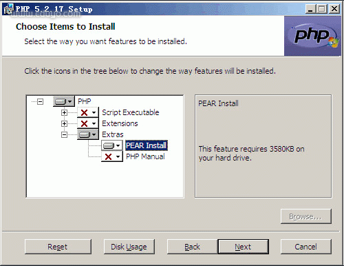 然后点击“next”按钮,到了选择安装选项的步骤,一般安装默认的就可以了,如果要添加的话需要点击一下前面的磁盘小图标,然后选择安装,第一项是只安装选中的项目,第二项是安装所有该项目的子项目。(图10)配置好后进入下一步