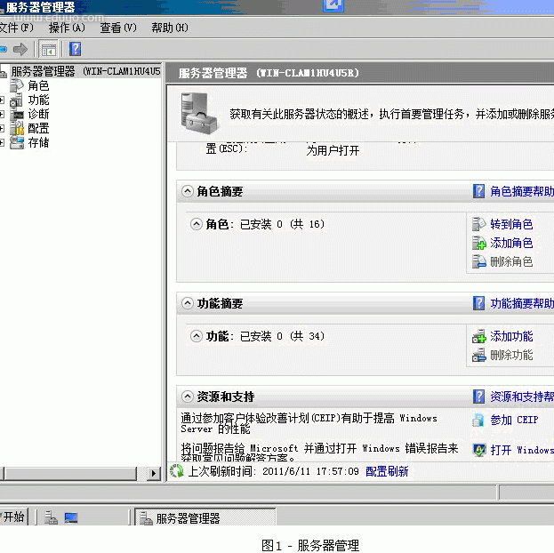 打开“开始”菜单→“服务器管理”,出现服务器管理界面(图1)
