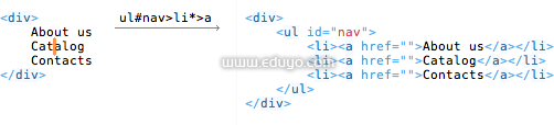 其中,类似 ul+ 的形式可展开为(+号可自动生产默认的子元素)
