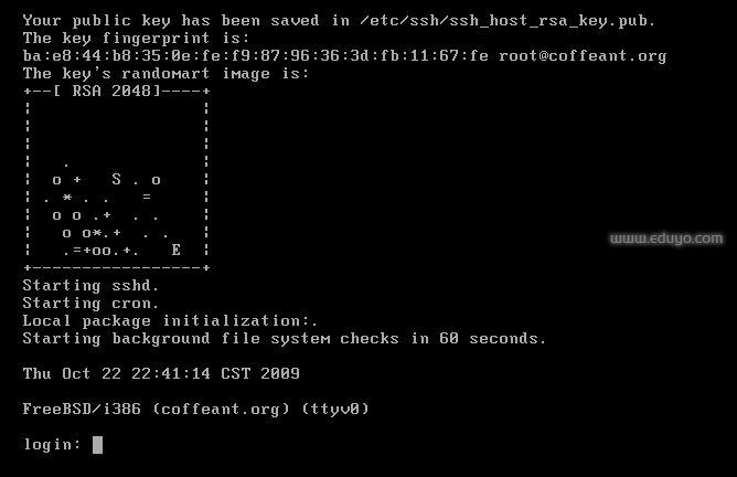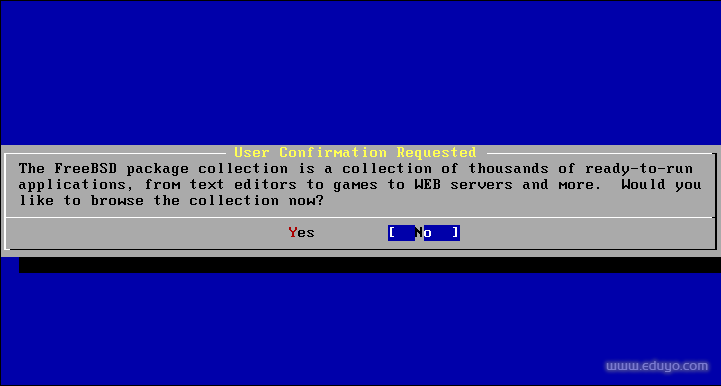 切到 [Yes] 按下 [Space] 或 [Enter] 后弹出光驱,取出光盘,机器重启.理论上讲,这是 FreeBSD 唯一的一次重启.