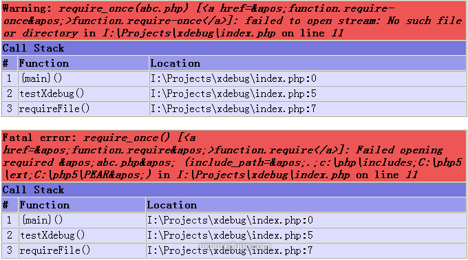 也就是说Xdebug具有类似于Java的Exception的“跟踪回溯”的功能,可以根据程序的执行一步步跟踪到出错的具体位置,哪怕程序中的调用很复杂,我们也可以通过这个功能来理清代码关系,迅速定位,快速排错。