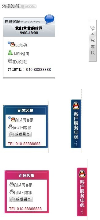 相应的QQ,msn,旺旺等号码到'OKQQ/ServiceQQ.js' 文件里修改。 相关代码文件请下载附件