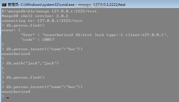 好了,我们进入test集合翻翻数据看看情况,我们发现jack用户始终都是没有写入的权限,不管是授权或者未授权。