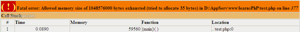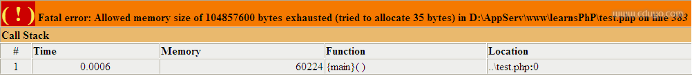 注:此时我php.ini中memory_limit值的配置是10M 站长教学网 eduyo.com