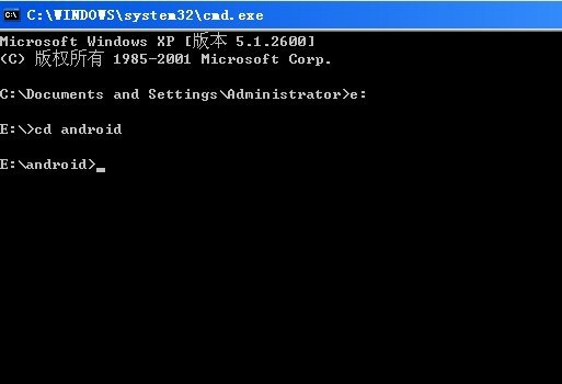 cd android 回车 (我的模拟器足彩分析安装在e盘android目录下的,所以进入e:\android)