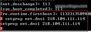 就输入 setprop net.dns1 218.104.111.114 注意DNS地址和net前面的空格 怕输错就直接复制吧。见下图