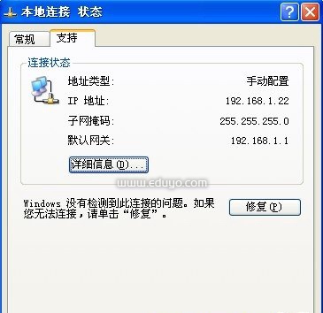 电脑右下角,本地连接图标上双击。站长教学网 eduyo.com