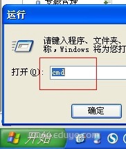 2、开始菜单—运行—输入cmd—回车进入DOS窗口。见下图
