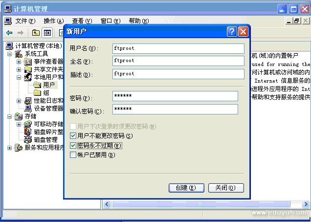 比如我们要用登陆,那就新建一个ftproot点创建,然后点关闭。