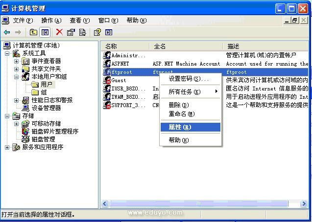 在以上界面我们要在本地用户和组用户里新建一个用户,是用于FTP登陆的