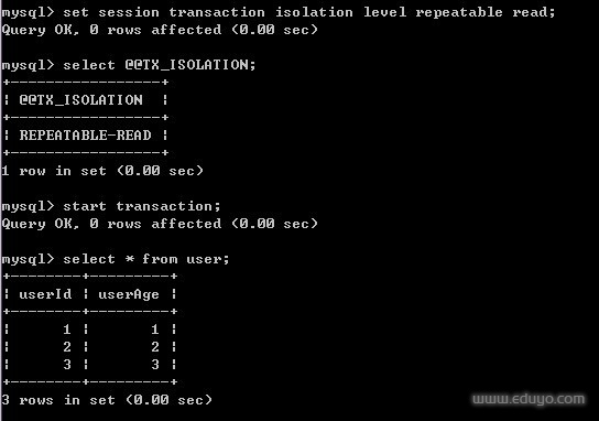 1 #可选参数有:READ-UNCOMMITTED, READ-COMMITTED, REPEATABLE-READ, SERIALIZABLE. 2 [mysqld] 3 transaction-isolation = REPEATABLE-READ