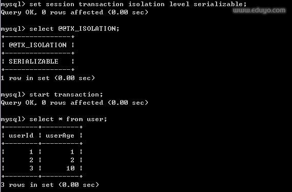 这是最高的隔离级别,它通过强制事务排序,使之不可能相互冲突,从而解决幻读问题。简言之,它是在每个读的数据行上加上共享锁。在这个级别,可能导致大量的超时现象和锁竞争。