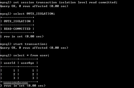 READ-COMMITTED事务隔离级别,只有在事务提交后,才会对另一个事务产生影响,并且在对表进行修改时,会对表数据行加上行共享锁